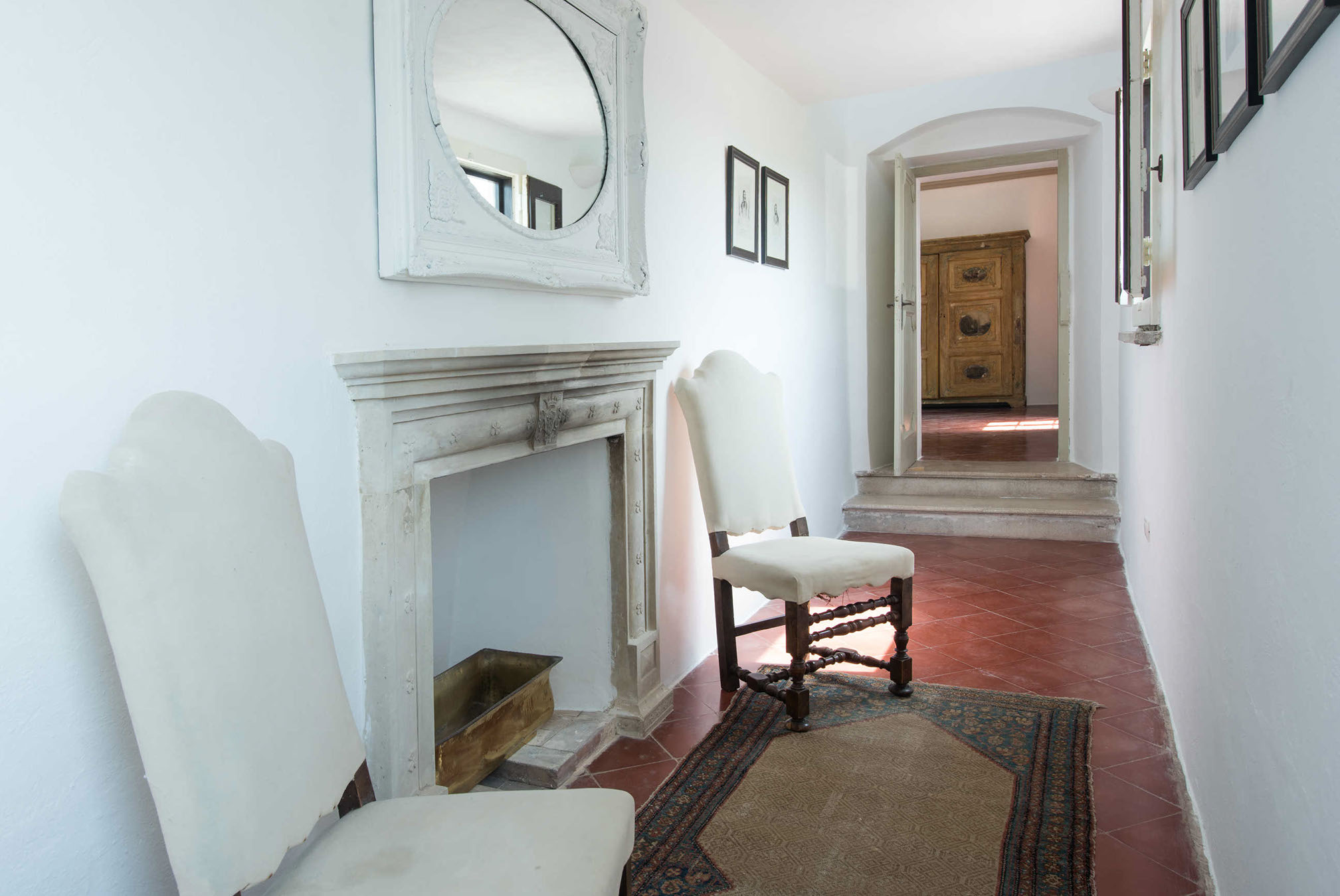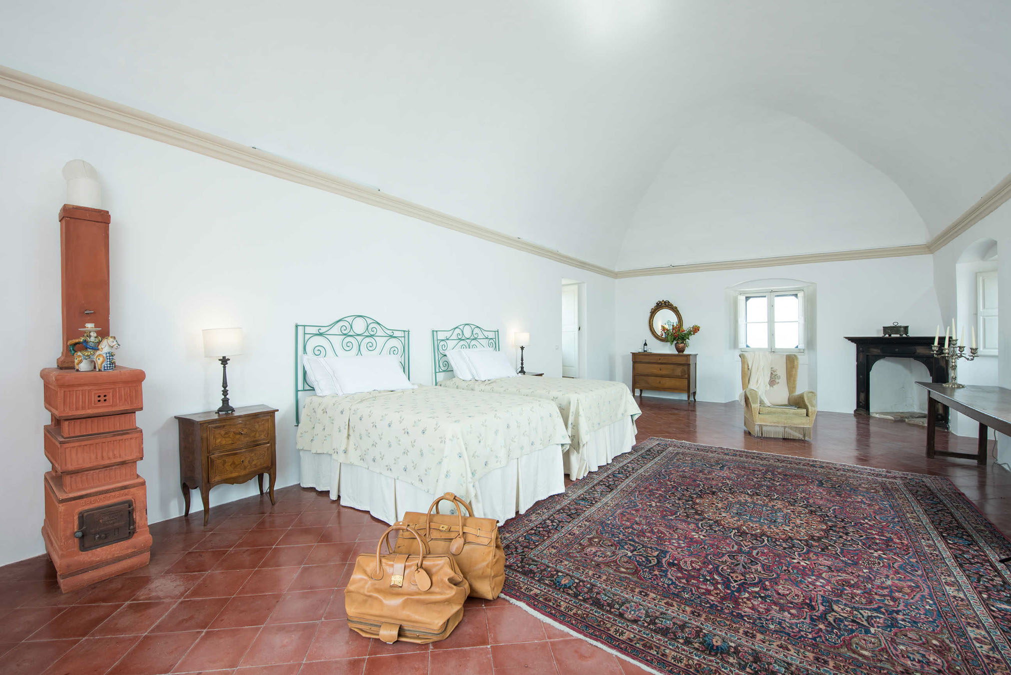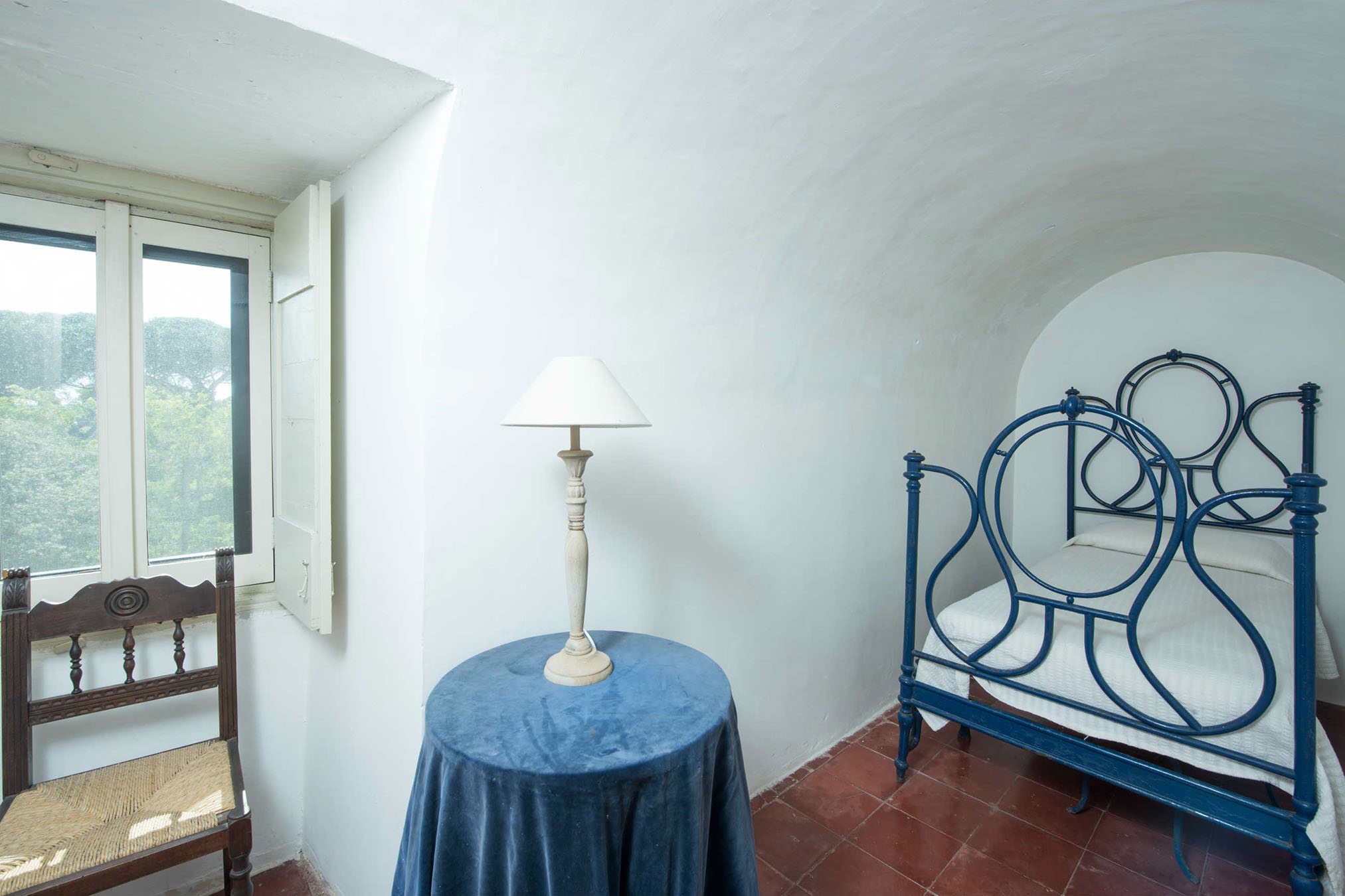 La SUITE CAMPANA, situata al secondo piano nobile, è circondata da ampie terrazze che dominano l’intero territorio fino a scorgere, all’orizzonte, il mare. E’ composta da una camera doppia molto grande e da due camere singole indipendenti. La camera doppia è con camino ed ha due antichi letti singoli larghi e alti. Il bagno, ricavato nella parte superiore della torre, è caratterizzato da una vasca d’epoca rosso mattone.