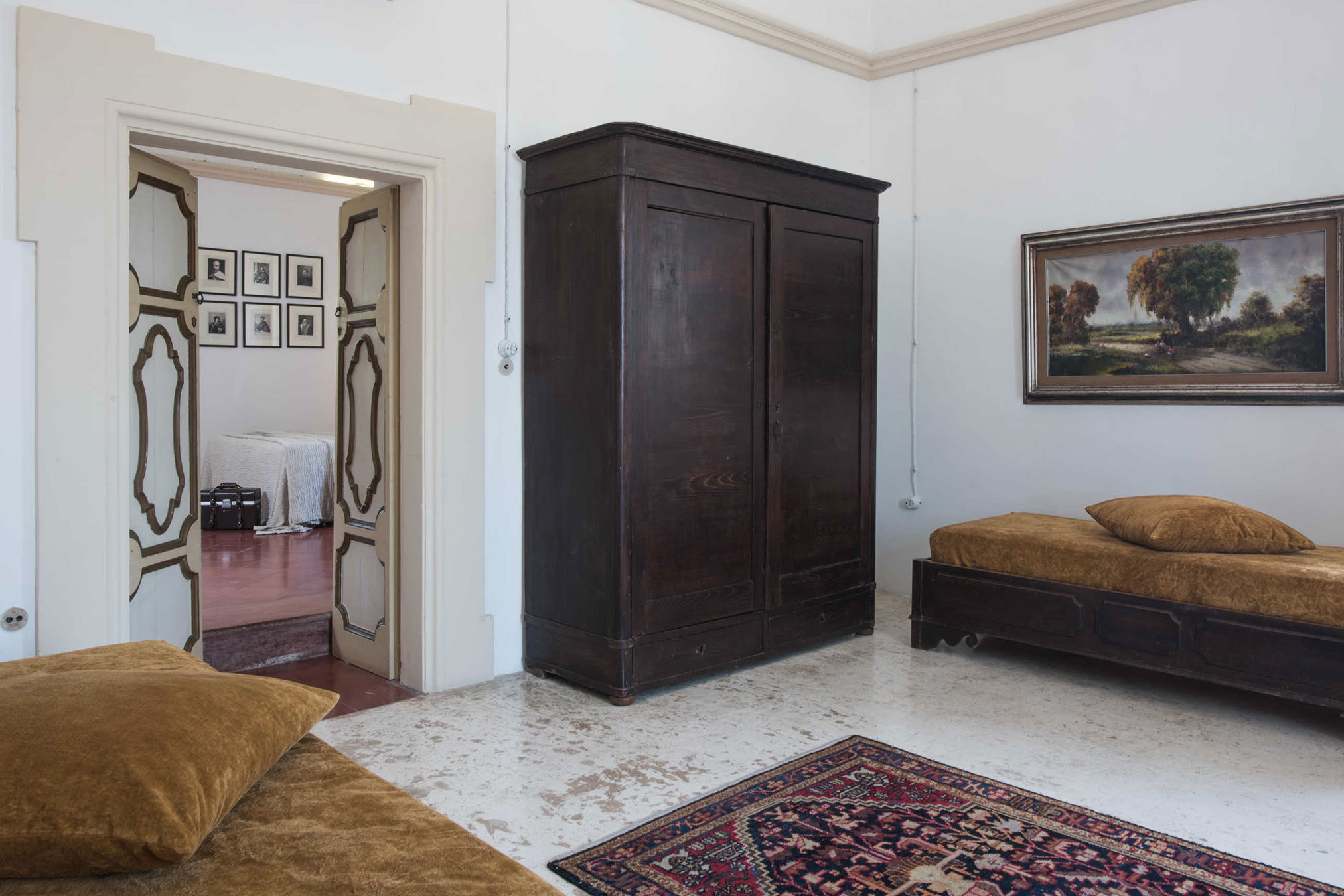 La SUITE TORRE, situata al primo piano nobile, è caratterizzata da una terrazza molto grande. È composta da una camera matrimoniale e da un salotto (con possibilità terzo/quarto letto). Il bagno, ricavato nella torre, è con vasca.