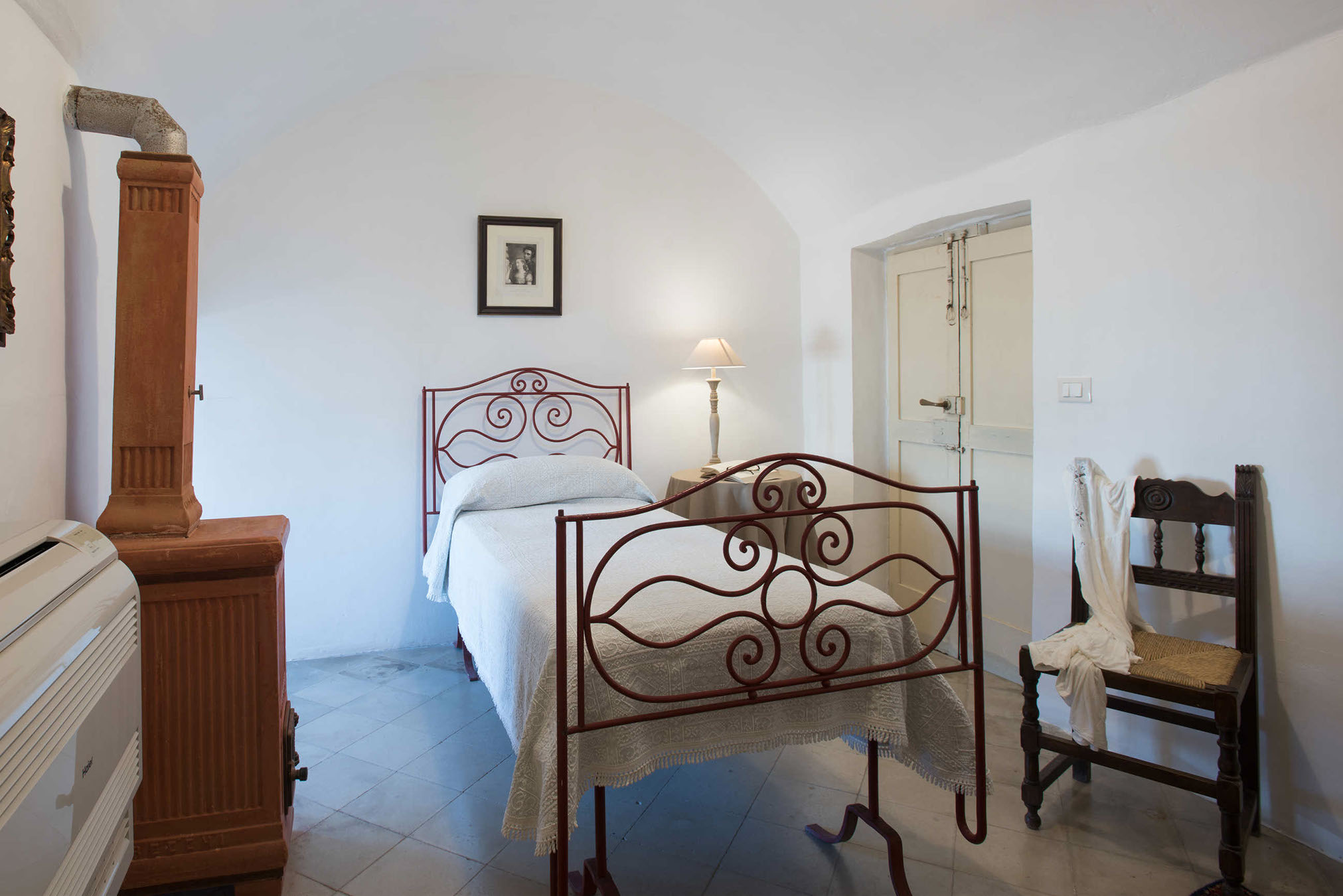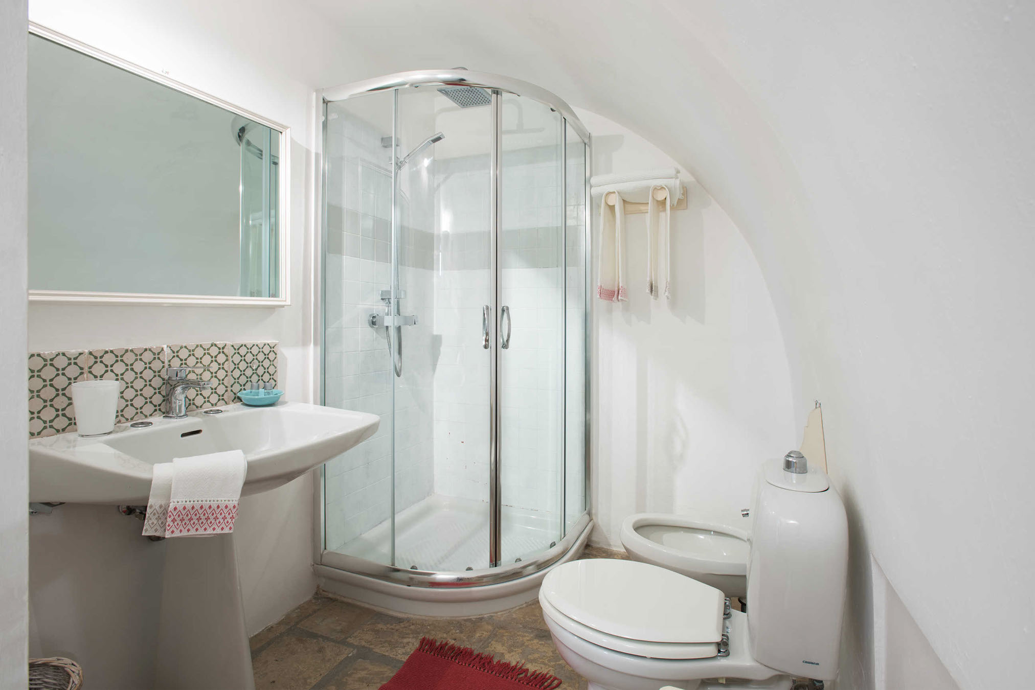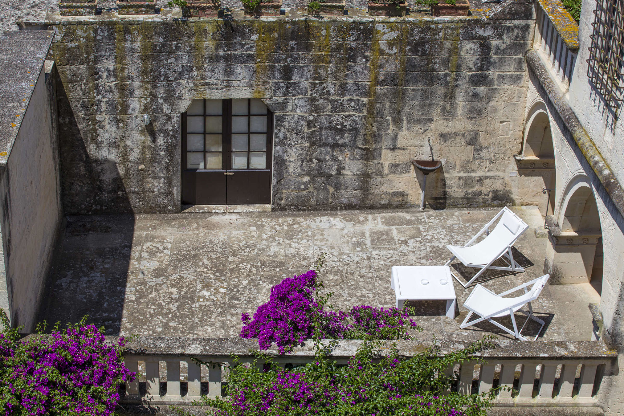 The suite has a charming private terrace. The suite consists of a double bedroom with a feature vaulted ceiling and a single room. This suite has a separate bathroom with a shower.